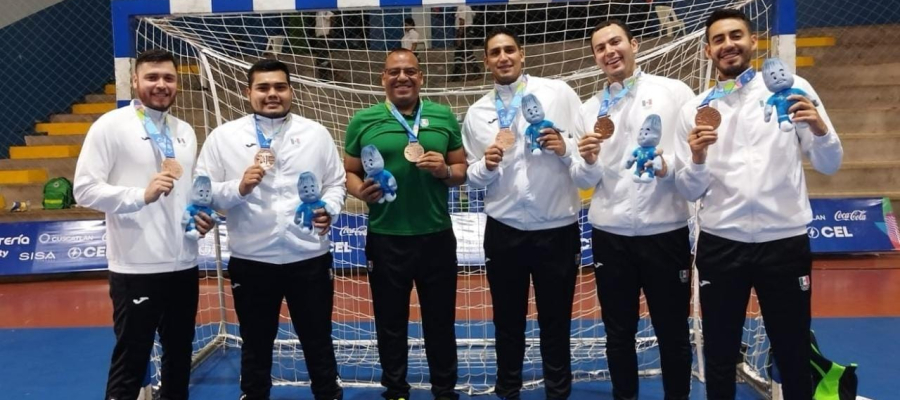 Toluca, Méx; 13 de julio de 2023. Ángel Rojas Rodríguez, entrenador del equipo representativo de handball de la Universidad Autónoma del Estado de México (UAEMéx), obtuvo medalla de bronce con la Selección Mexicana de Handball, de la cual también es entrenador, en los Juegos Centroamericanos y del Caribe San Salvador 2023.