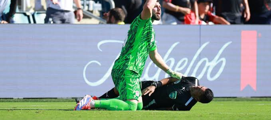 El portero canadiense Maxime Crépeau fue el primero en correr para asistirle y, en los siguientes minutos, el equipo médico atendió al abanderado, quien finalmente abandonó el juego en camilla.