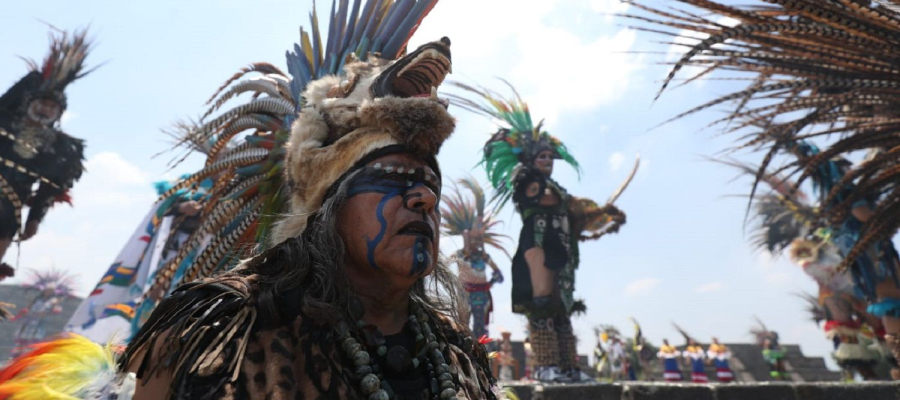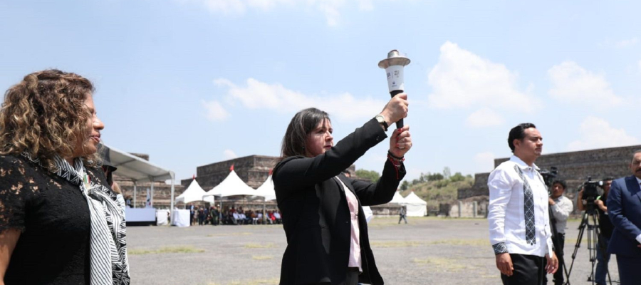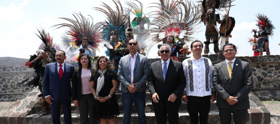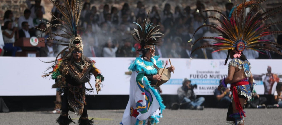 La ceremonia estuvo enmarcada por uno de los espacios culturales más importantes del país y la entidad mexiquense, donde, a través de un rito ancestral en el basamento de la Pirámide de la Luna, se encendió el fuego nuevo, acompañado por un grupo de bailarines que presentaron una danza prehispánica.