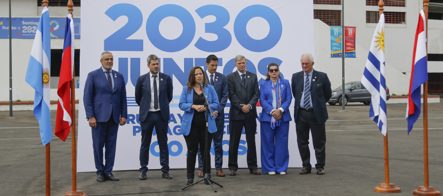 Chile, Uruguay, Argentina y Paraguay lanzaron hoy en el Estadio Nacional de Santiago la Corporación Juntos 2030, un organismo creado para promover y desarrollar la candidatura conjunta a la organización del mundial de ese año, con el objetivo de que la máxima competición del fútbol regrese a Sudamérica.