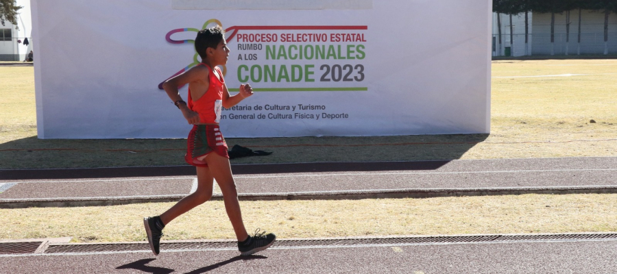 Zinacantepec, Estado de México, 21 de febrero de 2023. Durante la segunda y última jornada del Selectivo Estatal de Atletismo, en la Ciudad Deportiva Edoméx, las y los deportistas de la entidad mexiquense compitieron con el objetivo de registrar el mejor tiempo, que les diera su lugar en la Delegación estatal que participará en el proceso rumbo a los Juegos Nacionales Conade 2023.