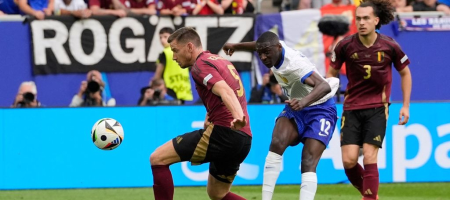 El primer tiempo fue de bajo ritmo, con una Bélgica replegada y una Francia sin muchas ideas para vulnerar esa defensa tan poblada. La primera ocasión clara de peligro llegó pasada la media hora, con un centro de Koundé que Thuram cabeceó desviado. La más clara del primer tiempo fue un remate alto de Tchouameni tras una jugada individual de Mbappé.