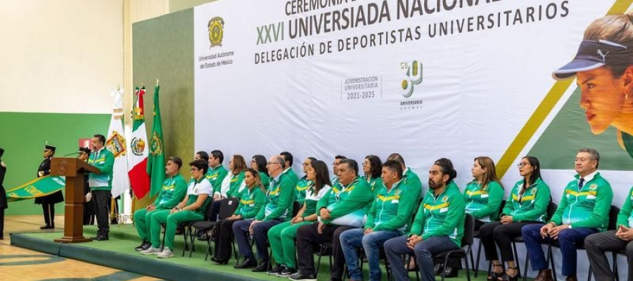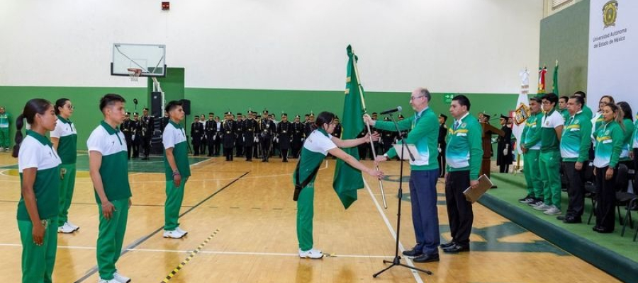 Toluca, Méx; 08 de mayo de 2024.* Esperamos de ustedes compromiso y entrega total, confíen en sus habilidades para demostrar grandeza, sin olvidar que la práctica de una disciplina deportiva es la oportunidad para crear entornos positivos que sean complemento de una sólida formación académica, sostuvo el rector de la Universidad Autónoma del Estado de México (UAEMéx), Carlos Eduardo Barrera Díaz, al abanderar a la Delegación de deportistas universitarios que participarán en la XXVI edición de la Universiada Nacional, que tendrá como sede a la Universidad Autónoma de Aguascalientes (UAA).