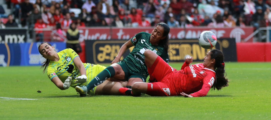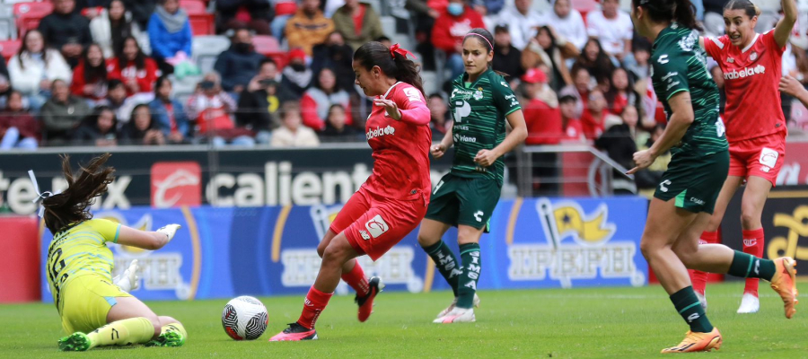 El vendaval escarlata se dejó sentir desde el arranque y es que el crono señalaba 46 segundos cuando el balón ya había cruzado la línea de meta de las laguneras. La encargada de abrir el marcador con esta tempranera anotación fue Brenda Woch, a servicio de Mariel Román. La brasileña mató de pecho, controló de derecha y se quitó a una defensora para luego definir, de derecha el 1-0 que hizo estallar al “infierno”, en una celebración que presagiaba una gran tarde de buen futbol y goles en la capital mexiquense.