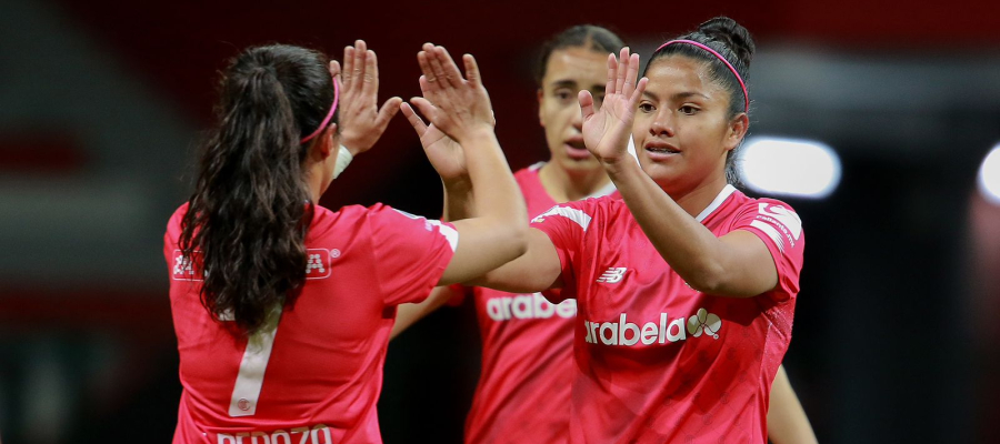 Mariel Román y Cinthya Peraza marcaron dobletes, y completaron la goleada Brenda Woch, Sam Calvillo y la juvenil Ivanna Estrada, sobre el final, para dar los primeros tres puntos a las escarlatas.
