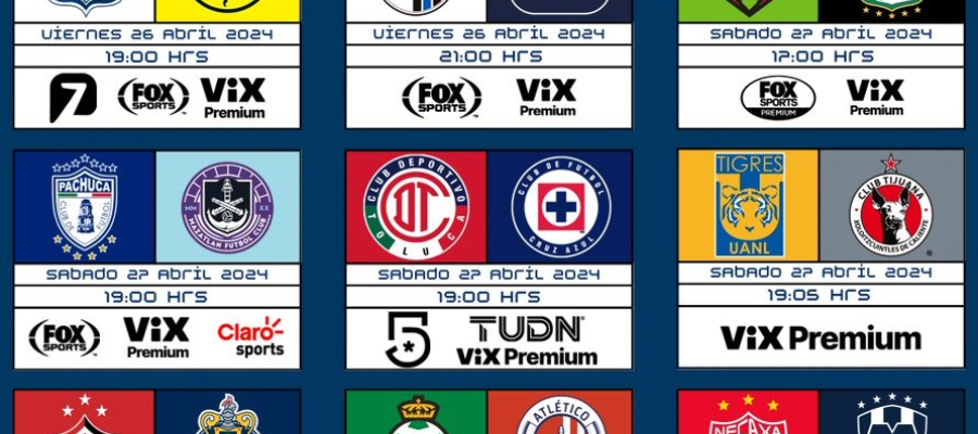 El domingo 28 de abril, la emoción continúa con los encuentros entre Necaxa y Monterrey a las 6:00 pm en el Estadio Victoria, con transmisión en VIX Premium y TUDN, así como Santos y Atlético San Luis a la misma hora en el Territorio Santos Modelo Corona, con transmisión en VIX Premium y TUDN.