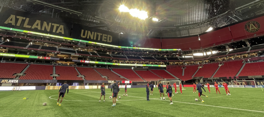 Por ello, esta noche el platel escarlata entrenó en el Mercedes Benz Stadium. Iniciaron con un importante trabajo de movilidad para aligerar el viaje a territorio norteamericano y continuaron con el tradicional "torito”, para dar paso al trabajo técnico en espacios reducidos, cerrando la práctica con un interescuadras.