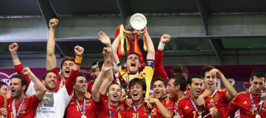La selección española reafirmó su dominio en el fútbol mundial al ganar la Eurocopa 2012, celebrada en Polonia y Ucrania. En una impresionante actuación en la final, España goleó a Italia 4-0 con goles de David Silva, Jordi Alba, Fernando Torres y Juan Mata, convirtiéndose en el primer equipo en ganar tres grandes torneos consecutivos (Eurocopa 2008, Mundial 2010 y Eurocopa 2012).