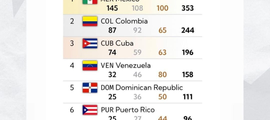 Esta destacada actuación reafirmó el dominio de México en el deporte regional, ya que en la edición previa de los Juegos, celebrada en Barranquilla 2018, también se alzó en la cima del medallero con un total de 341 medallas, incluyendo 132 de oro. En resumen, México ha ganado los Juegos Centroamericanos y del Caribe en 12 de las 24 ediciones hasta ahora, demostrando una constancia en superar consistentemente las 300 medallas.