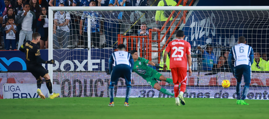 Tiago Volpi ejecuto a la izquierda del arquero quien con un manotazo desvió el balón a un costado, sin embargo, el árbitro lo repitió al corroborar que Carlos Moreno se adelantó al momento del cobro. En el segundo disparo no cambio la dirección, pero el guardameta se venció al lado contrario para darle vuelta al marcador y poner el 1-2 en favor de la oncena escarlata.