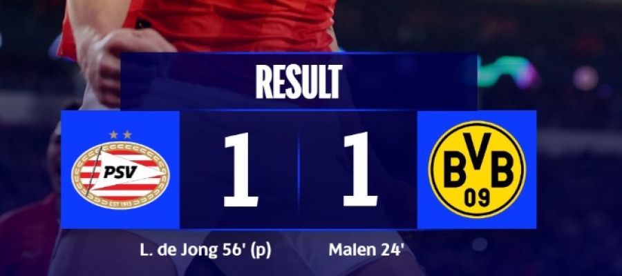 Mientras tanto en Países Bajos, en el estadio Philips se jugaría el Dortmund vs el PSV, encuentro que tendrán que resolver en la vuelta debido a que quedaron 1-1, Malen puso la ventaja para Dortmund en el 24´ y con un partido con pocas llegadas, pero con más efectividad, pero llegaría Luuk de Jong por la vía de los once pasos para empatarlo al 56´y cerrar la primera parte del capítulo entre estos dos equipos.