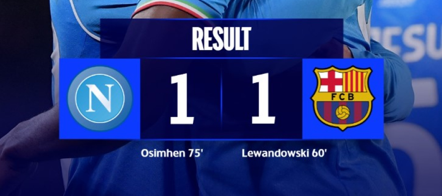 El ultimo y probamente el más atractivo de los juegos se jugaría en el estadio Diego Armando Maradona, el Napoli y el Barcelona competían por el boleto hacia los octavos de la Champions, aunque el partido tuvo más llegadas por parte del equipo español no pudieron anotar más que un gol que llego por parte de Lewandowski al minuto 60´, pero esta ventaja no duraría mucho pues llego Osimhen para poner las cosas 1-1 y dejarlo todo para el partido de vuelta en España.