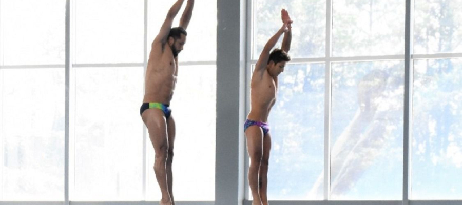 Zinacantepec, Estado de México, 18 de abril de 2023. En días pasados se realizó una muestra de clavados en el Centro Acuático de la Ciudad Deportiva Estado de México, a la cual asistió el deportista Jahir Ocampo Marroquín.